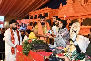 रायपुर. श्री अनिरुद्धाचार्य जी महाराजश्री की अवधपुरी मैदान गुढ़ियारी में स्व. श्री सत्यनारायण बाजारी (मन्नू भाई) जी की पुण्य स्मृति में आयोजित श्रीमद् भागवत कथा