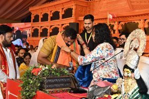 विधायक टी. राजा ने अपने चिर-परिचित ओजस्वी उदबोधन में महाराजश्री का स्वागत करते हुए धर्मान्तरण पर प्रहार कर उपस्थितजनों को हिन्दुत्व के प्रति जागरुक किया. उन्होंने प्रदेश सरकार से भी इस विषय पर सख्त कानून बनाने की मांग की. उन्होंने देशव्यापी संगठन खड़ा कर हिन्दू राष्ट्र की दिशा में कार्य करने का मंच से संकल्प लिया. महाराजश्री ने श्री टी. राजा को स्मृति चिन्ह भेंटकर एवम् श्रीकृष्णनामी केसरिया पटका पहना कर सम्मानित किया.