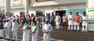 छत्तीसगढ़ प्रदेश अध्यक्ष जी दीपक बैज जी व अन्य कांग्रेसी गण ध्वजारोहण करते हुए